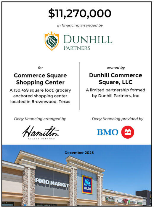 Dunhill Partners Investment Sales is a team that offers expert advisory, valuation, negotiation, due diligence management and acquisition / disposition services. The firm strives to create maximum value for clients in every transaction through a synchronized marketing approach that brings clients to the market – and buyers to the opportunity – with efficiency, speed, and execution that helps investors preserve and grow their wealth. Dunhill Partners focuses on well-located retail shopping centers, with a focus towards necessity-based services like grocery and pharmacy services, in stable markets with population and job growth.